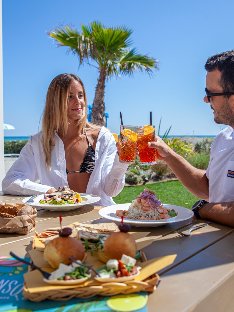 Arriva il momento più rilassante del giorno. La luce dorata del sole che ti sfiora, i piedi nella sabbia, un cocktail fresco, una piadina fatta in casa, focacce e cassoncini... l’atmosfera è quella giusta e puoi godertela con amici o con una persona speciale.